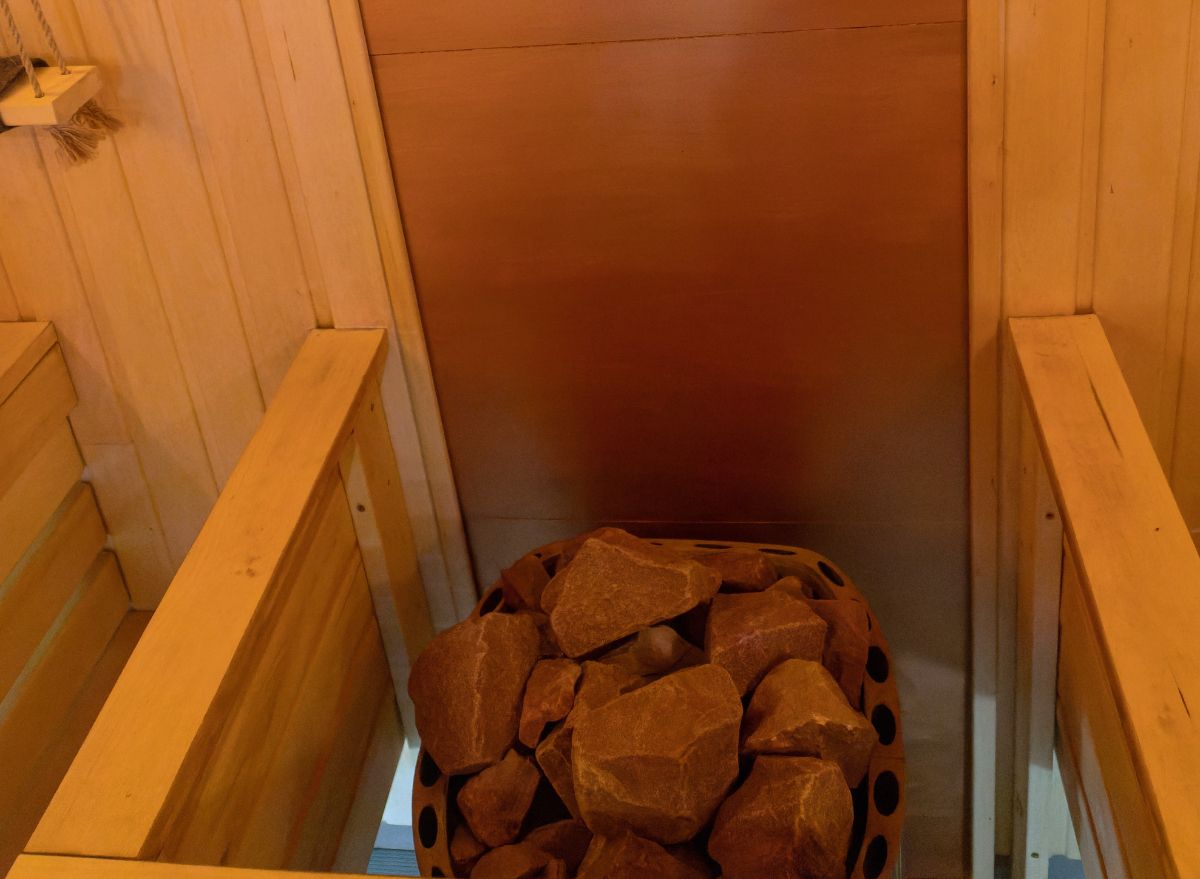 Финская парная премиум-класса с кварцитовыми малиновыми камнями из Карелии
